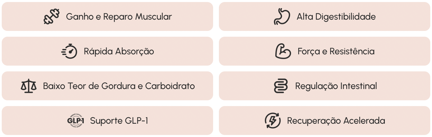 Proteína isolada e hidrolisada à base de peptídeos de colágeno, com a tecnologia inovadora alemã BODYBALANCE® + PeptiStrong™.