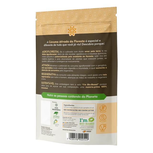 A Cúrcuma Ativada da Floresta Com Gengibre Raízes de Poder Viva Regenera é um blend de cúrcuma em pó ativada pelo efeito do gengibre em pó.