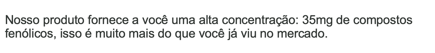 ESTE PRODUTO NÃO É UM MEDICAMENTO. NÃO EXCEDER A RECOMENDAÇÃO DIÁRIA DE CONSUMO INDICADA NA EMBALAGEM. MANTENHA FORA DO ALCANCE DE CRIANÇAS. ESTE PRODUTO NÃO DEVE SER CONSUMIDO POR GESTANTES, LACTANTES E CRIANÇAS.